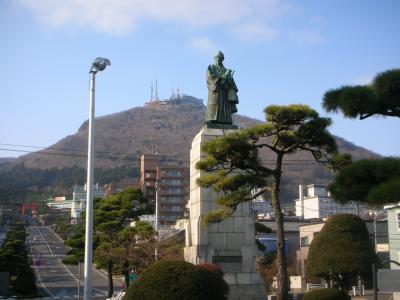 市電の駅からも近く、函館山をバックに構える銅像は絵になります。