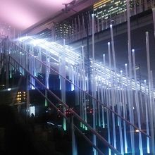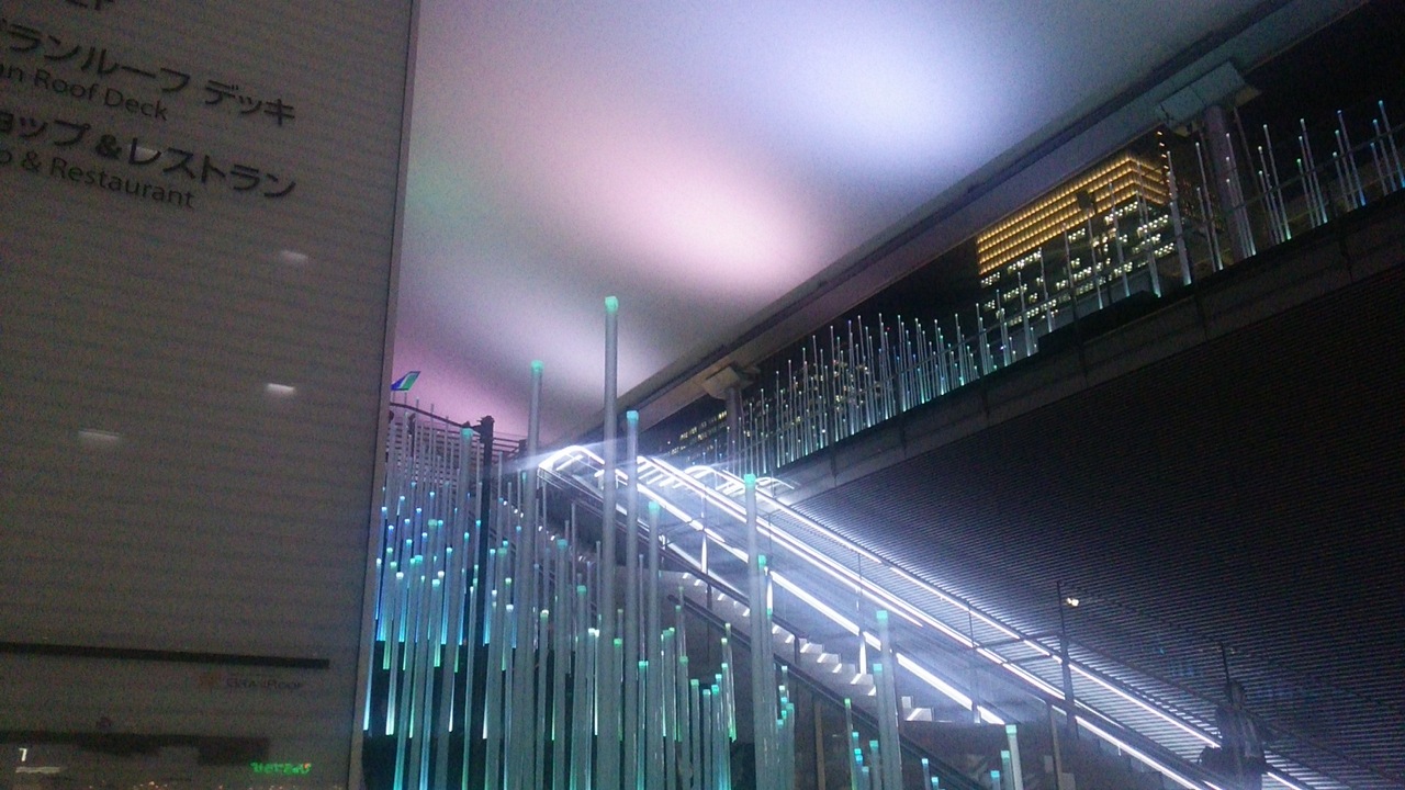 東京駅八重州口側、2Fのペデストリアンデッキと階段のところ、花壇のところのイルミネーションがキレイでした。