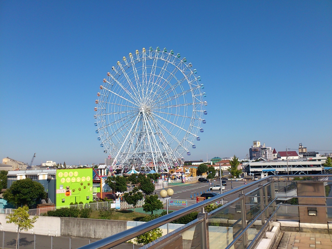 名古屋港水族館へ行く道の途中に大きな観覧車があります。部地区最大級の高さ85m、一周約15分の名古屋港のランドマークです。入園無料の遊園地で、乗り物や施設ごとにお金を払うシステムです。そんなに広くなく、こじんまりとした遊園地です