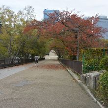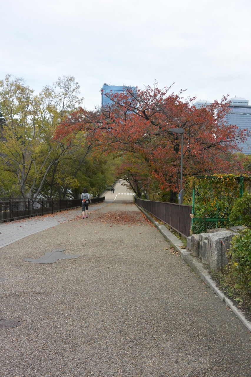 大阪城の東側、北から南に向かって急な上り坂になっています。ちょうど梅林を左手に見て上るような形になります。現在は盛り土によって勾配はゆるやかになったそうですが、それでも、けっこう急な坂がダラダラと続きます。