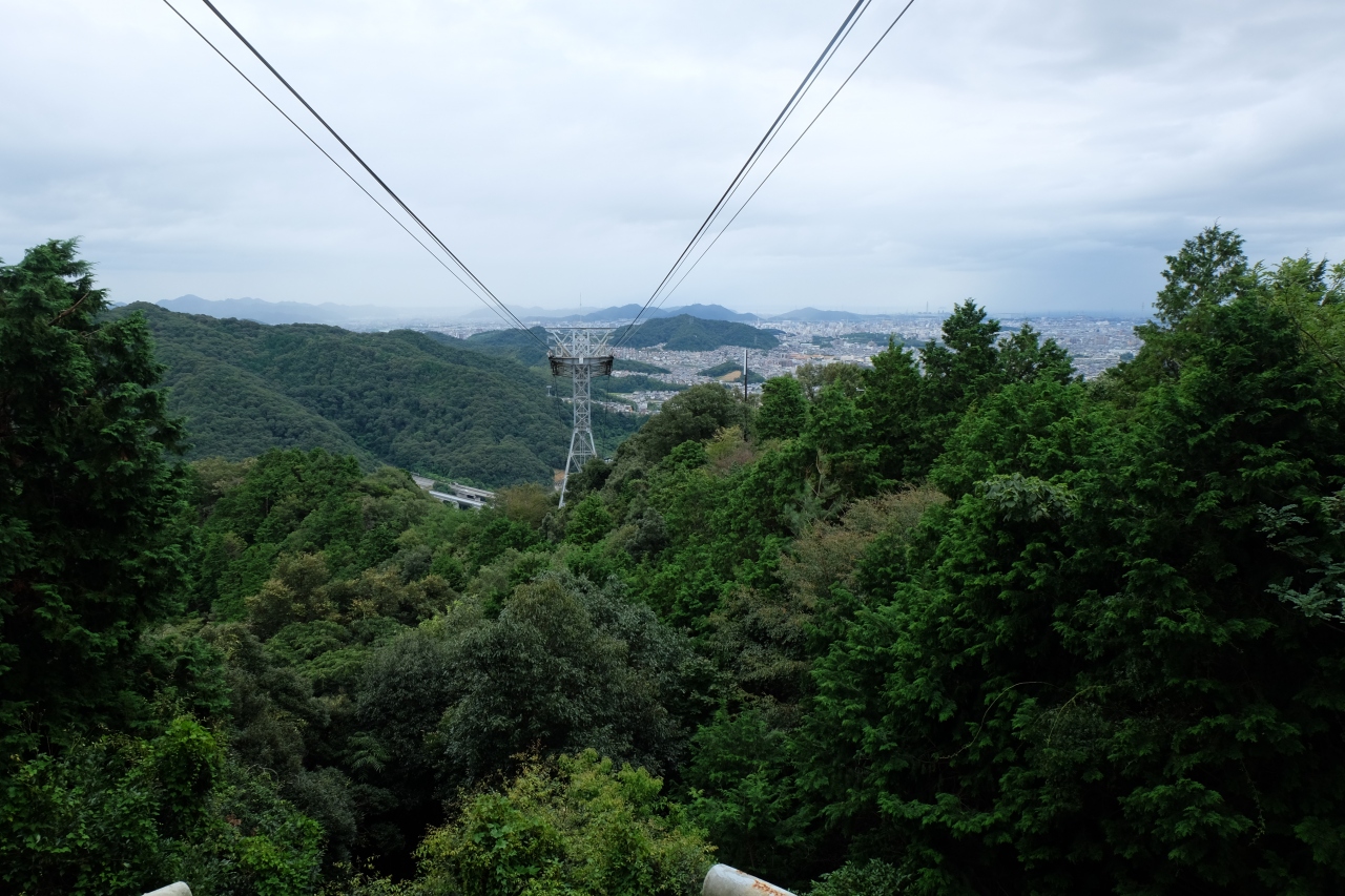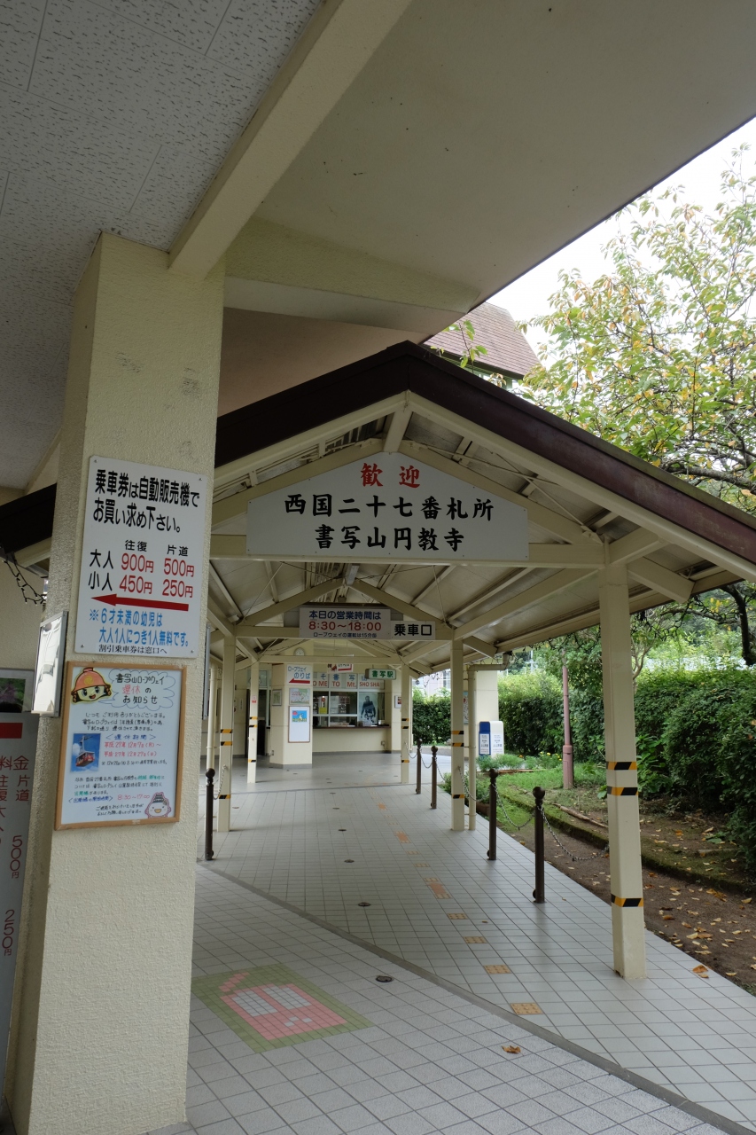 このロープウェイを登ると山上に円教寺があります。ロープウェイの運転は15分ごとに行われていて、運行中はガイドさんが書写山のことについていろいろ話をしてくれます。なかなか高いところまで登るので、遠くには海も見えて景色はとてもよかったです。