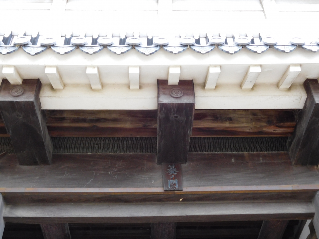 菱の門の名前の由来は、両柱の上の冠木に木彫りの菱の紋があることから付けられました。