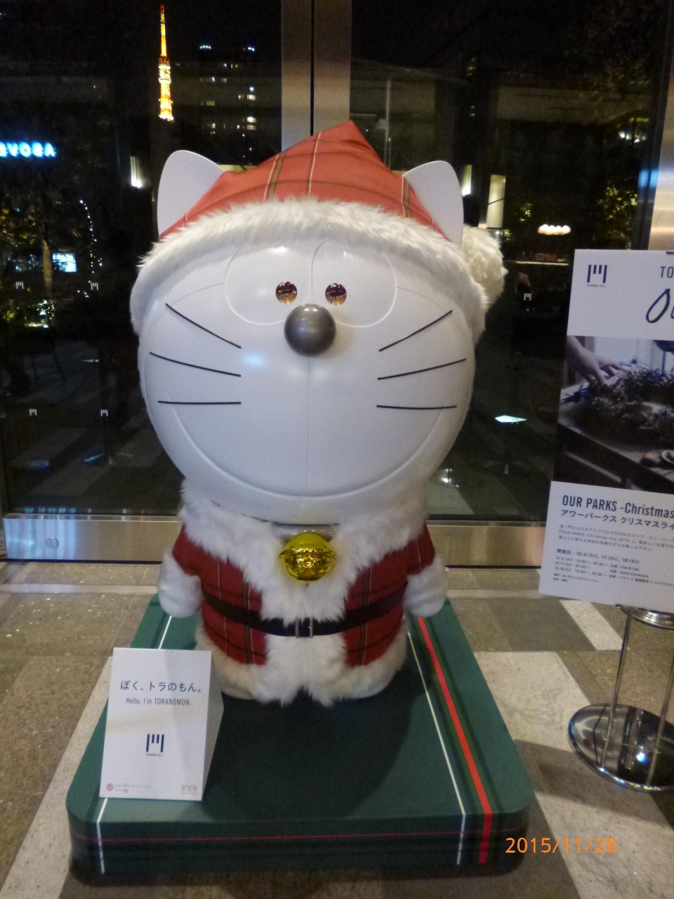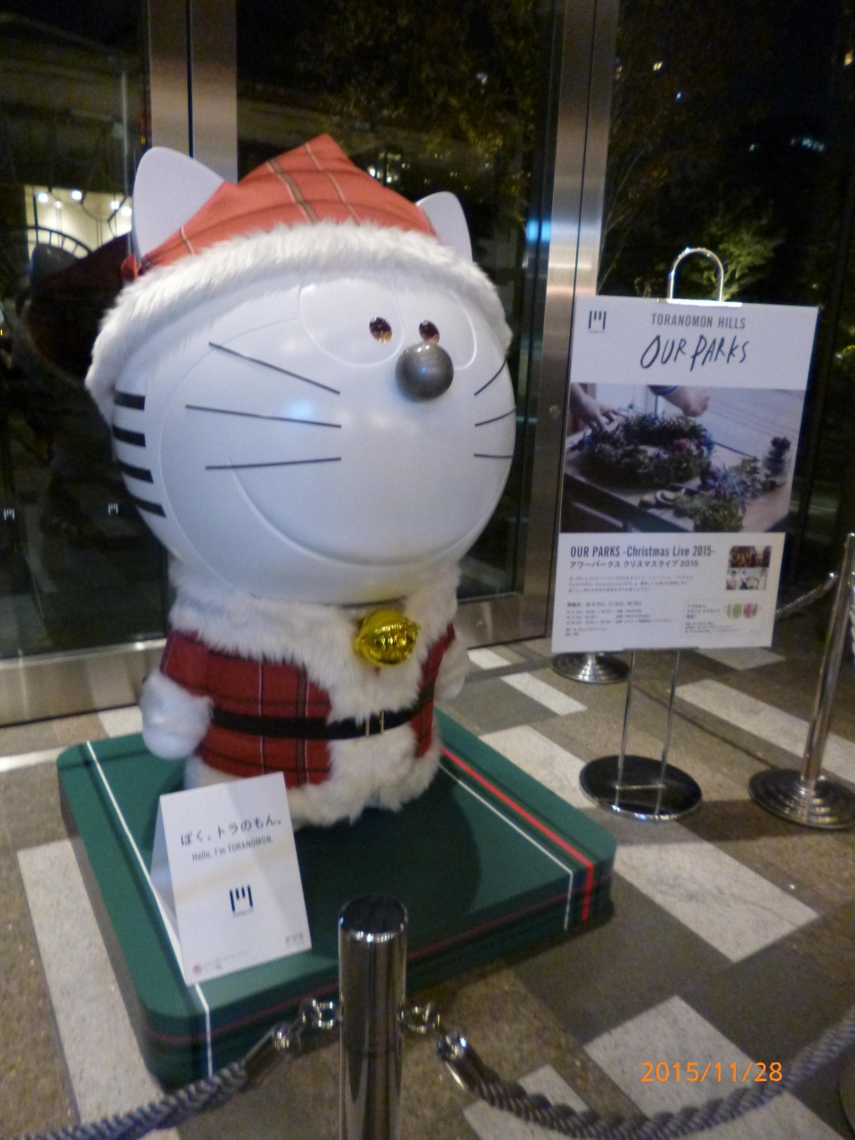 虎ノ門ヒルズにはサンタクロースの衣装をしたトラのもん君が居ました。