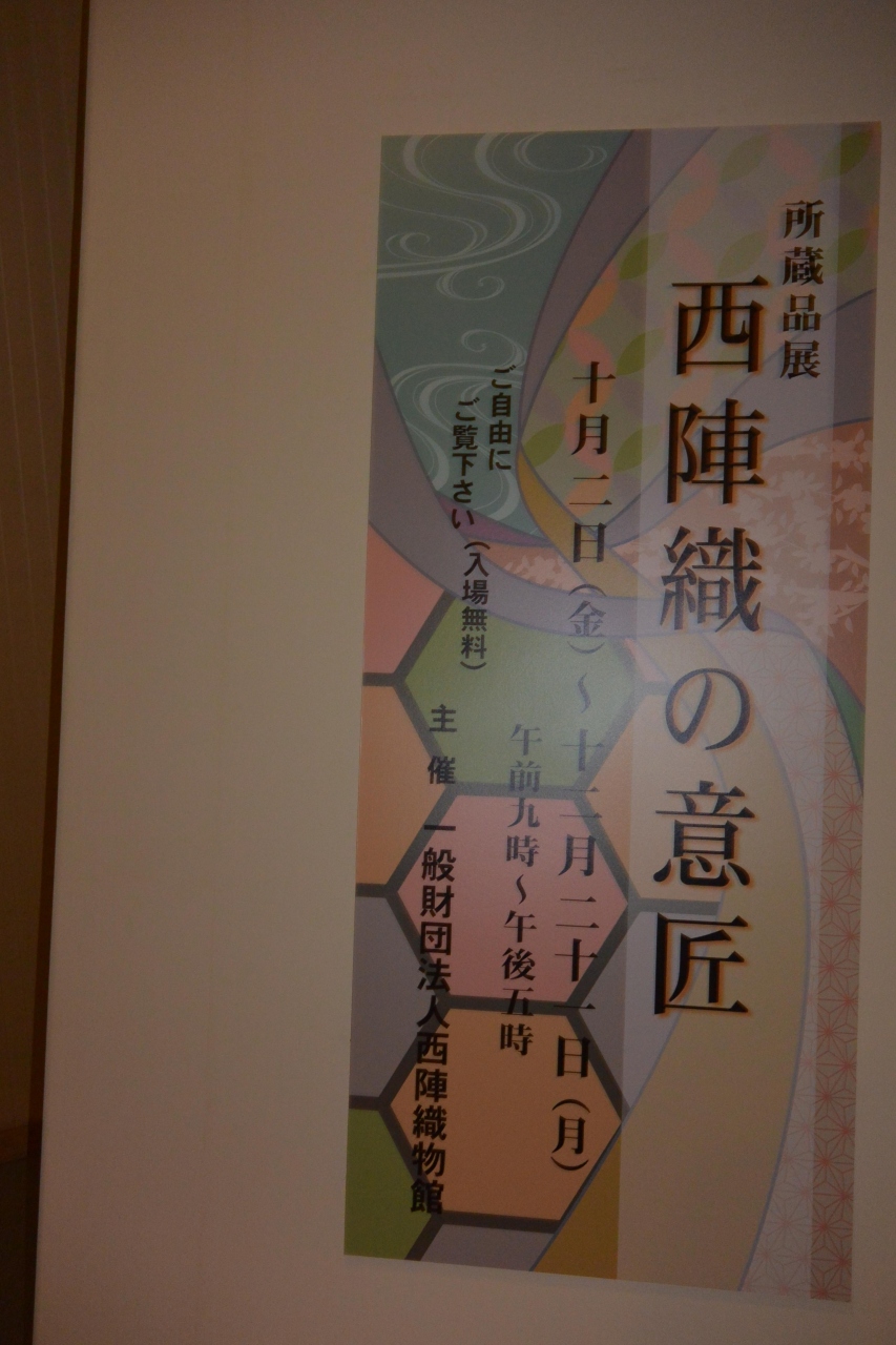 一階はお店と着物ショーの舞台、ニ階はお店、三階には資料館がありました。着物ショーは一時間に一回ほど行われているようです。お客さんは団体の観光客が多いようで、資料室まで見学している人はいませんでした。資料室には西陣織の着物や帯、図案などの展示があります(写真撮影は禁止)