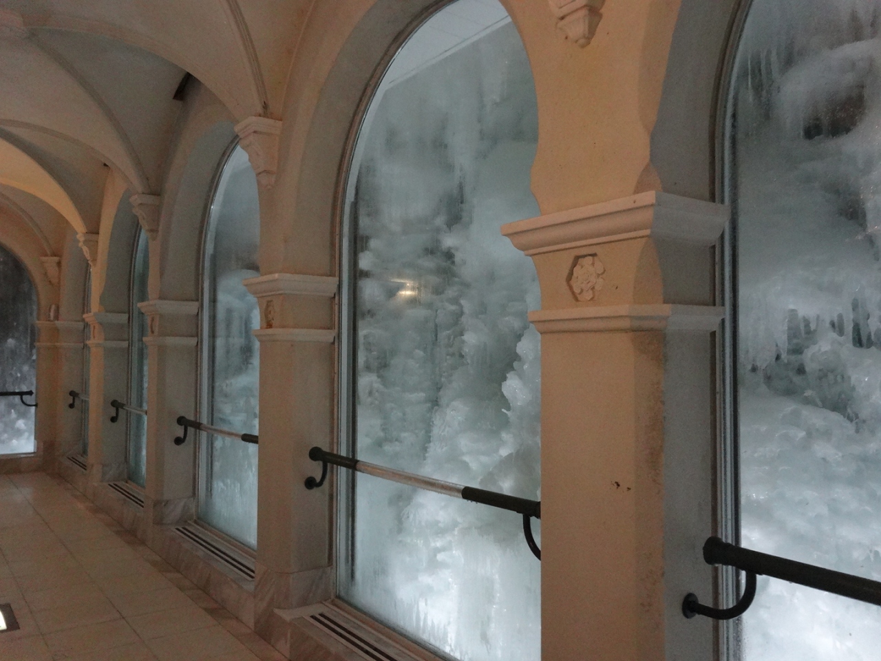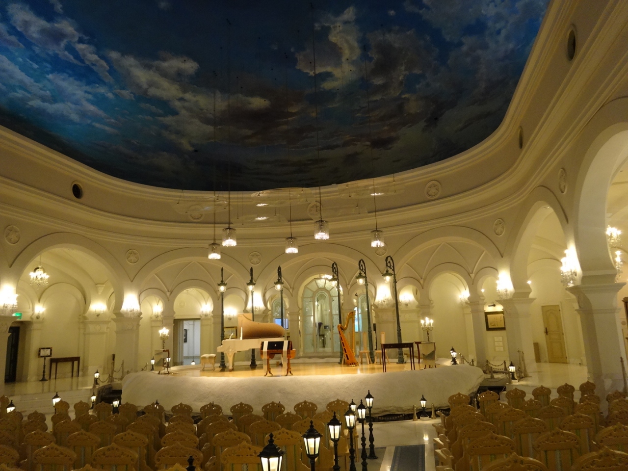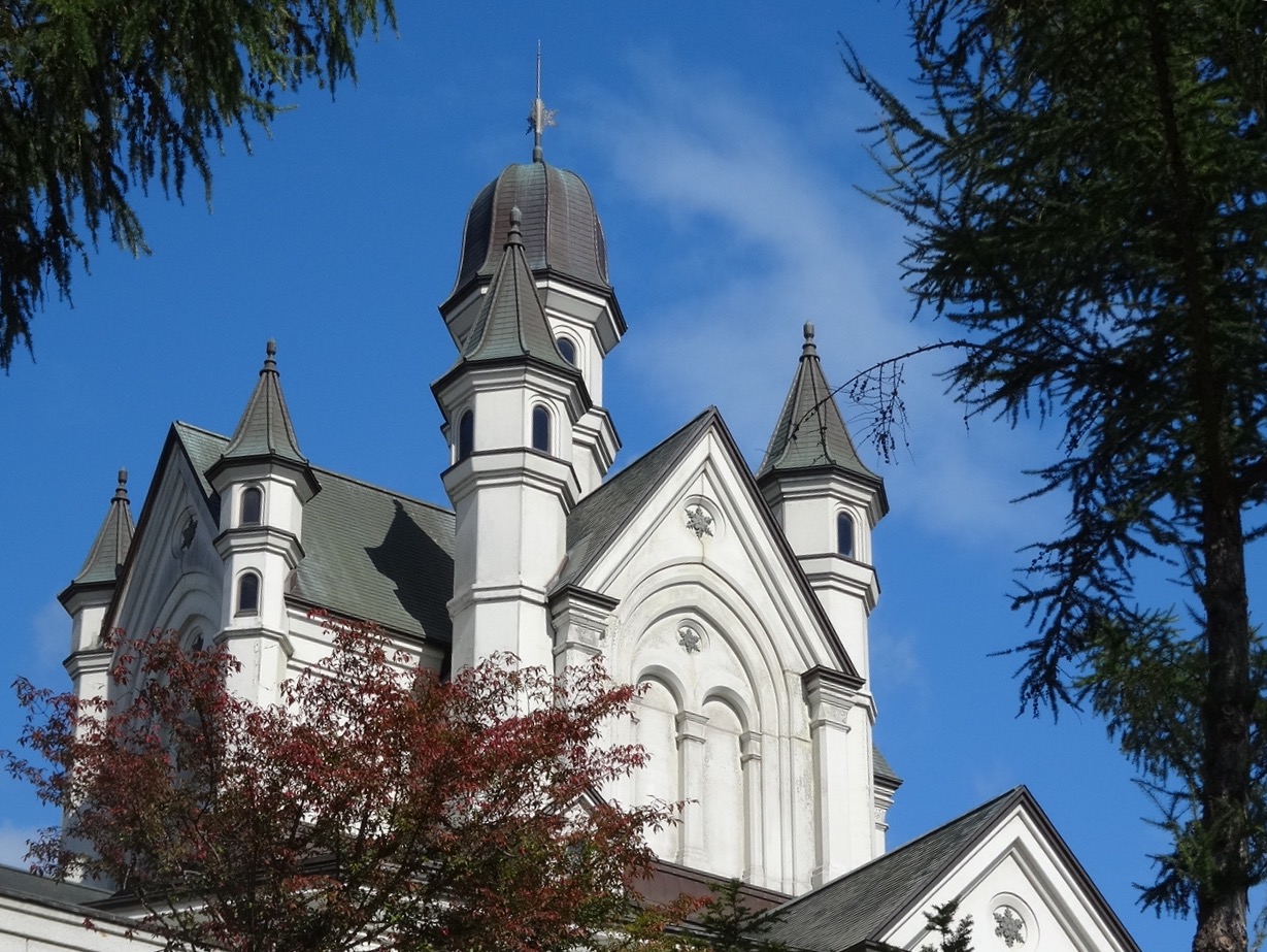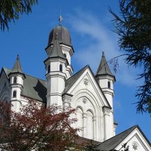 車を走らせていると見えてくるヨーロッパのお城のような外観はテーマパークかと錯覚しそうですが美術館です。北海道伝統美術工芸村にある3館のうちの一つです。建物から展示物まで大雪山系に降る雪をイメージしてつくられています。入り口からすぐ地下18mに降りる螺旋階段があります。内装も調度品も白くキラキラしているので特に女性には魅力的な美術館でしょう。