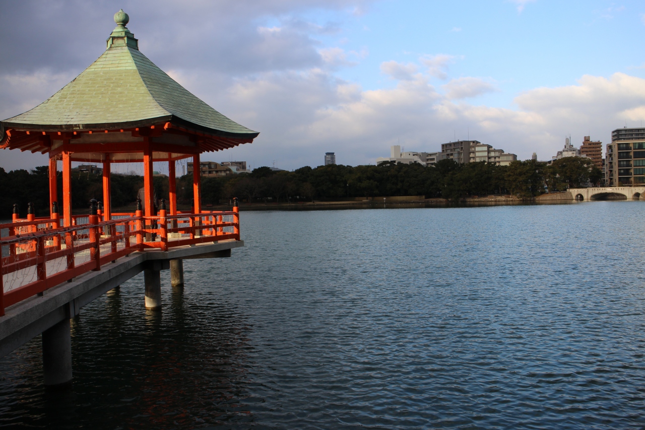 福岡市西部、博多の中心部から市営地下鉄空港線を利用すれば約15分とアクセスがいい大濠公園内にある、福岡城築城当時に博多湾の一部を外濠として造られた池です。