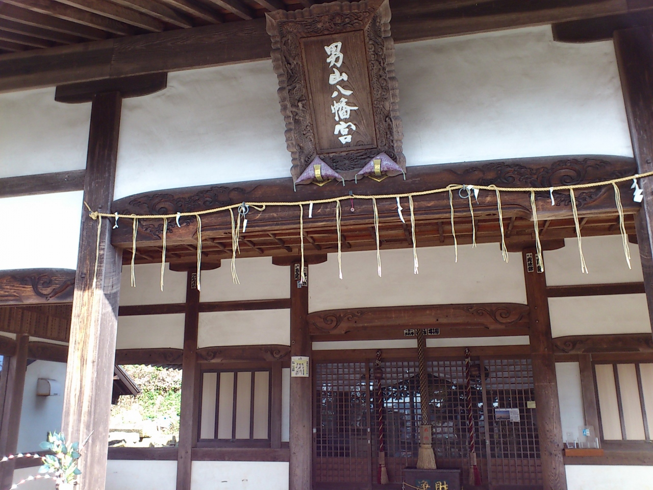 男山の中腹に千姫天満宮がありますが、有名な割には小さなお社でした。さらに石段を登って行くと、この男山八幡宮があります。こちらの八幡宮は立派です。この姫山の地に赤松貞範が砦を築いたのが、姫路城の初めです。この赤松貞範が男山の山頂に城の鎮守社として建てたのがこの男山八幡宮で、その後の歴代の姫路城主に信仰されてきた神社です。