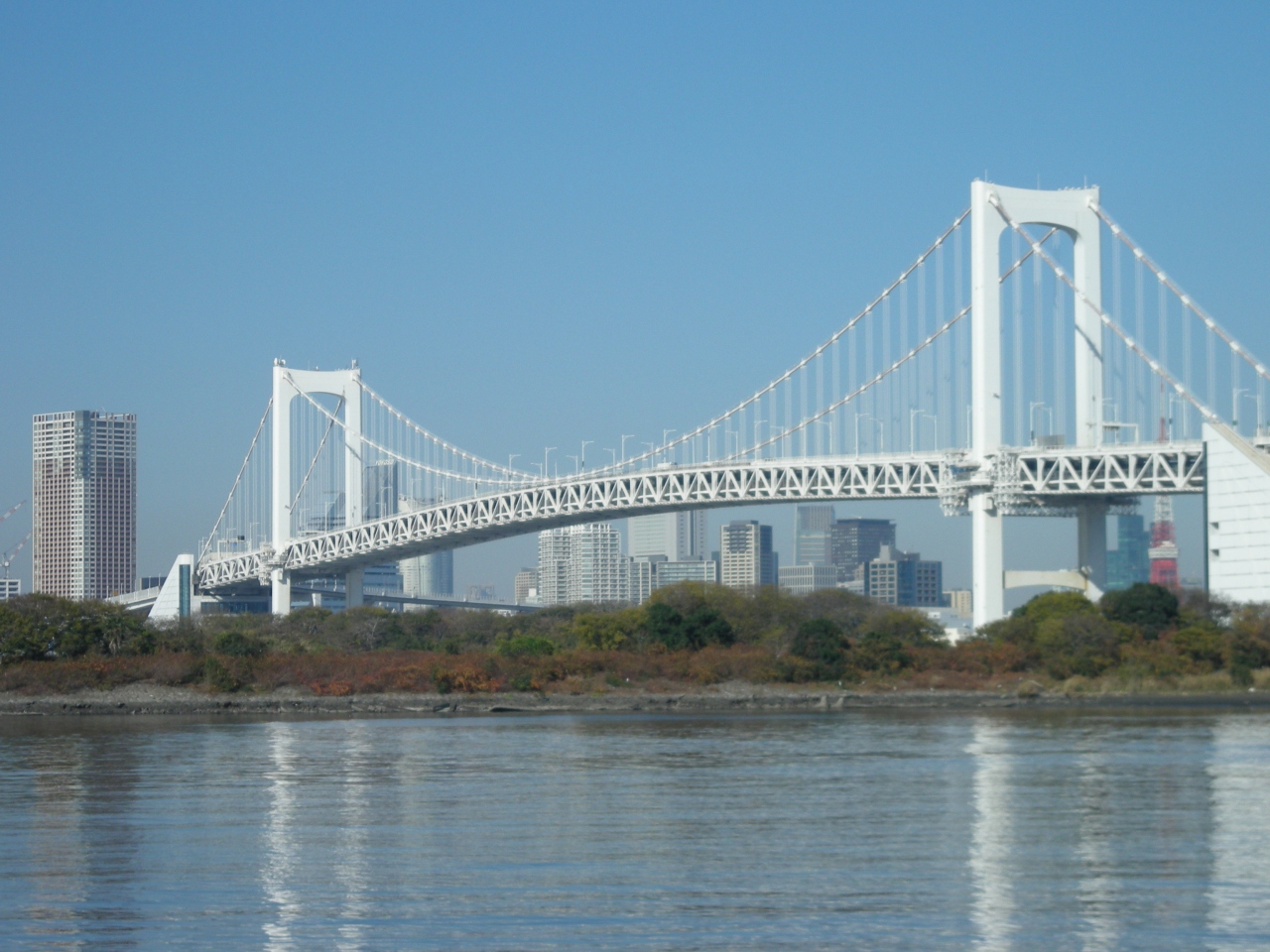 東京の臨海副都心と都心を結ぶ橋です。いつも車であっという間に通り過ぎてしまい、その美しさに気が付きませんでしたが、お台場海浜公園から見たレインボーブリッジは、青空に浮かび上がり大変美しかったです。都心をのんびり歩いてみるのも新しい発見につながります。次回はレインボーブリッジを歩いて渡ってみようと思います。
