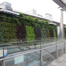 東京駅八重洲口から徒歩1分です。八重洲北口の大丸東京店と八重洲南口のグラントウキョウサウスタワーを結ぶ長さ約230mの大屋根とデッキが開放的な空間を作ってます。東京駅改札口付近の雑踏と対照的な静かな落ち着いた場所です。手入れされた草花の前に透明な椅子がありのんびりできます。