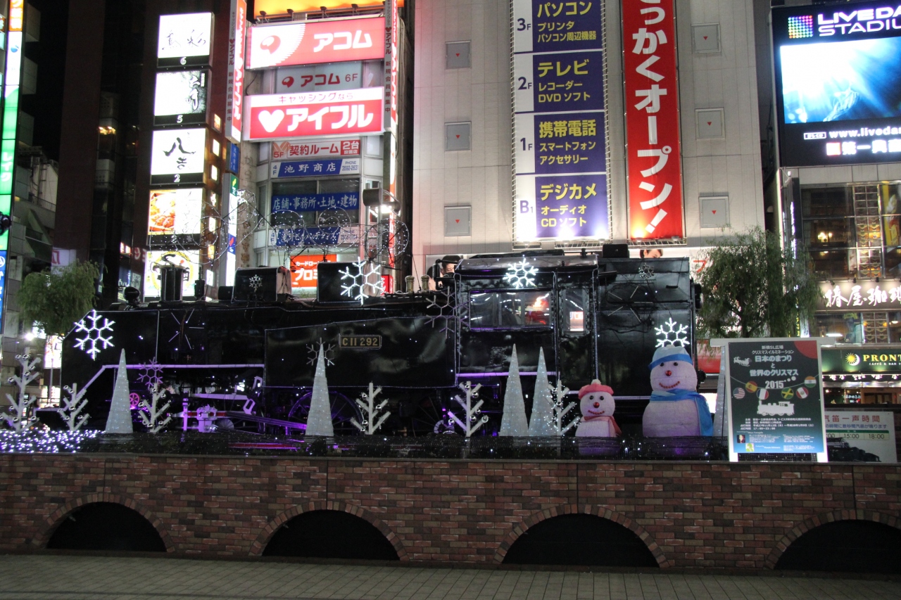 2015新橋クリスマスイルミネーションとして11月14日から来年の1月9日までSLが電飾されています。