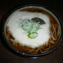 高尾山ケーブルカー乗り場の近くにある古民家風のお蕎麦屋さんです。老舗らしく建物にも風格があり情趣あふれる感じがします。名物とろろそばを頂きました。お蕎麦は細めですがコシがあり、そのお蕎麦にねっとりとろろが絡みのど越し良い食感です。シーズンオフということもあり店内は静かでしたが、冷えた身体に沁みわたるお味でした。