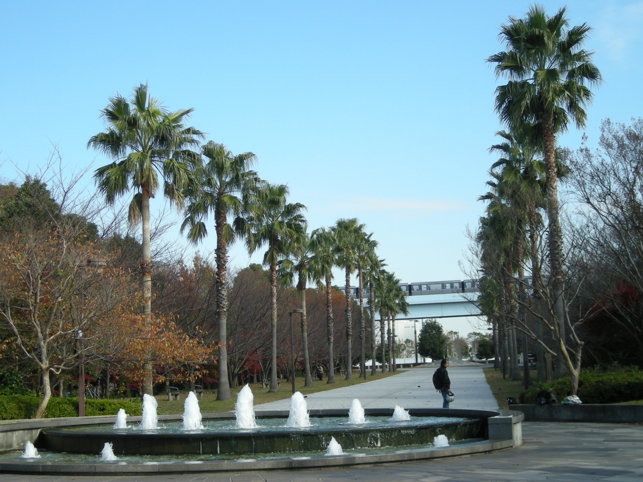 お台場海浜公園に隣接した広い公園です。園内は北エリアと南エリアに分かれています。南エリアには公園のメイン通路である水と緑のプロムナードがあり、長くまっすぐな通りにヤシの木が茂り、その外側には桜の木が植えられています。北エリアにはバーベキュー広場があり、予約しておけば手ぶらで行ってもバーベキューを楽しめます。