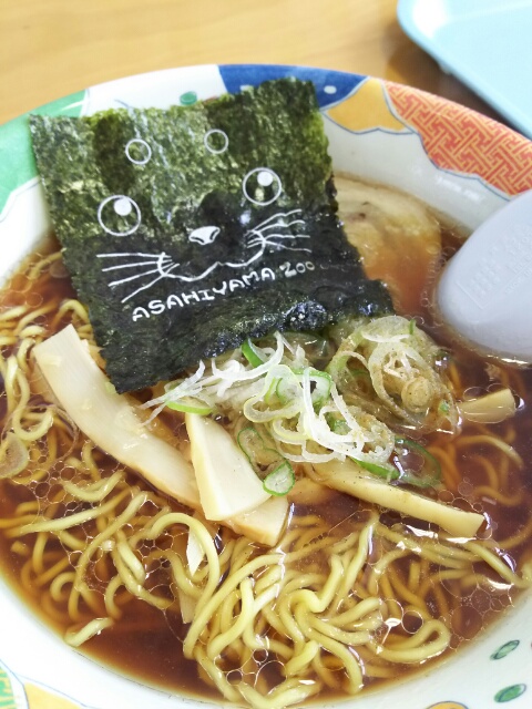 シンプルな醤油ラーメンですが のっている海苔に アザラシの顔がついていました。