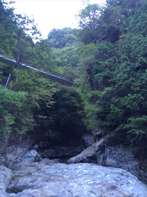 みたらい渓谷 (ミタライケイコク)での写真撮影の場所としては、ここがおすすめです。ここでは、背景が雄大な岩山となっていて、また、薄暗い感じが一種、独特な雰囲気を醸し出しています。ぜひ、一度、行ってみてください。