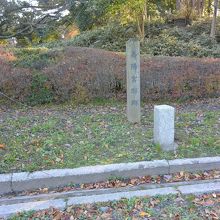 京都御苑の出水口を入ってすぐ右側に碑が立っています。京都御苑は通路は全て砂利が敷き詰められているので歩くとけっこう疲れます。縁石の上を歩くと楽なのですが、下を向いて歩いていると、横に張り出した松の枝にぶつかってしまいました。