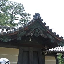 鬼門である、御所を囲む塀の東北の角を欠けたようにして、そこに神の使いである御幣を担いだ猿を祀り魔よけにしました。しかし猿は夜な夜な抜け出して悪さをするので金網で封じ込めたとか・・。桃太郎で猿が鬼退治をするというのもここから来たお話かもしれませんね。