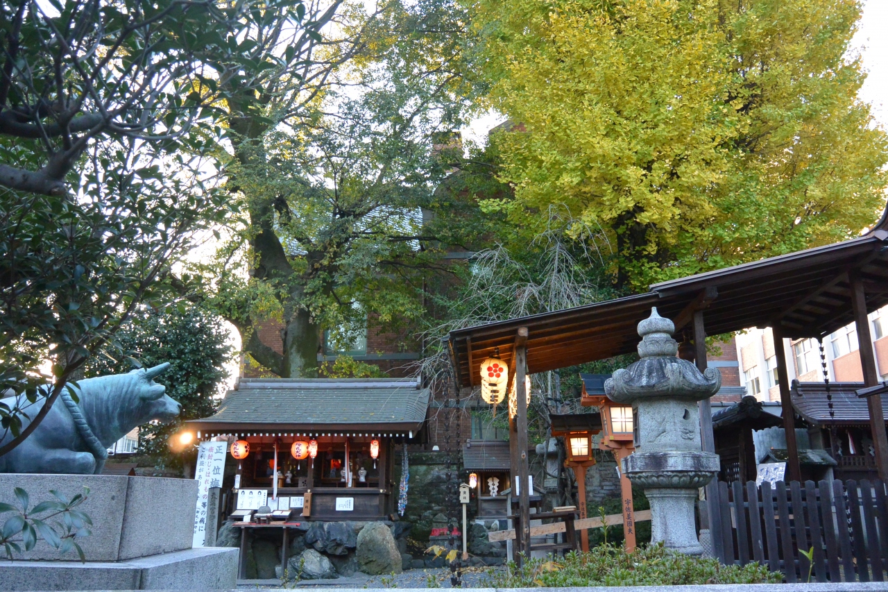 境内のすぐむこうには平安女学院の煉瓦造りの建物が見えて、絵になる光景でした。道真がここで生まれたとされ、菅公産湯の井というのもあります。
