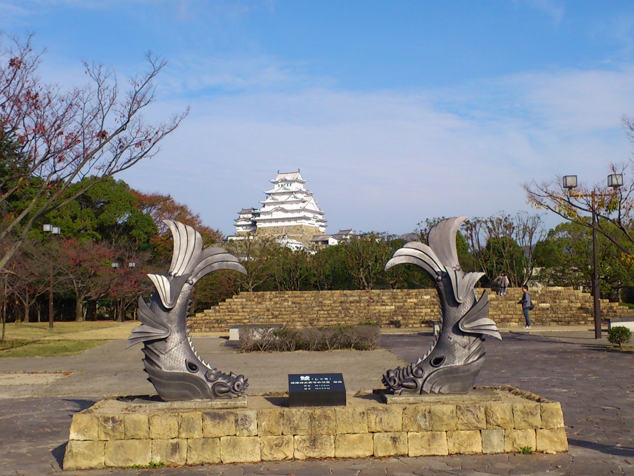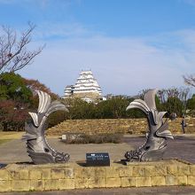 名前の通り、姫路城の天守閣が綺麗に見える公園です。姫路城の大手門を正面に見て右側、大手前公園の道路を挟んでお城がわにあります。左右にしゃちほこの像がある記念写真を撮るための台があります。ここで姫路城をバックしにて写真を撮れば、良い記念になると思います。