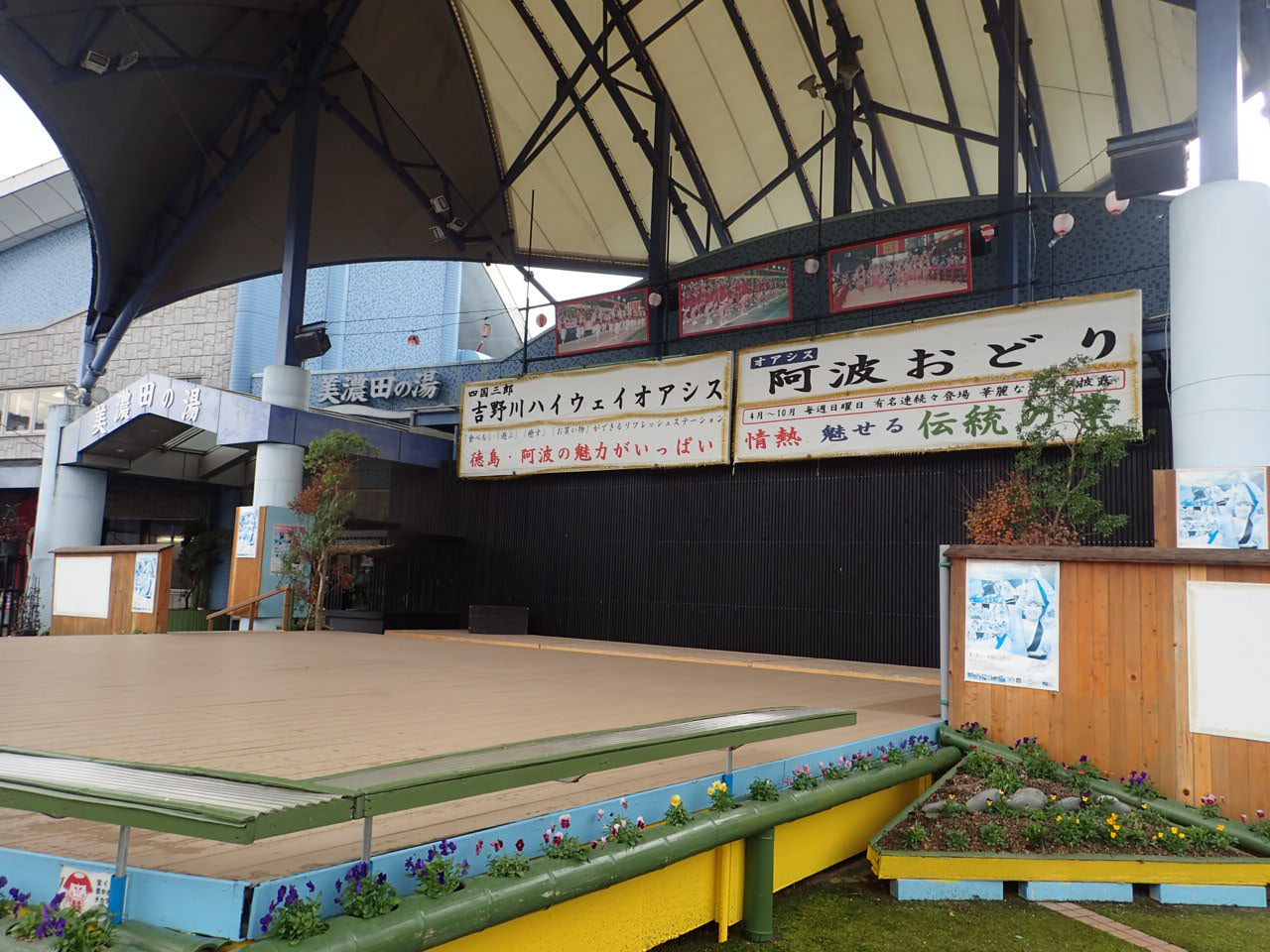 吉野川ハイウェイオアシスでは、日祭日には阿波おどりが見れます。生で見る踊りは迫力や優雅さが違うので観光客の人には、喜ばれています。公園もあり、小さな子供も1日遊べ、そのあいだにお母さんたちは、店内でショッピングができまし。産直市場もあり、地元産の新鮮な野菜がたくさんあります。