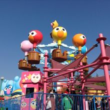 USJのユニバーサルワンダーランドの中にできた新しい乗り物です。バルーンに乗って、上に上がってまわる乗り物ですが、ハンドルがついているので、まわすとコーヒーカップのようにクルクル上で回ります。