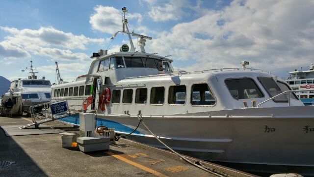 宇品港から江田島に向かうため利用しました。本当は中町港へ向かいたかったのですが、そこからのバスがなく、仕方なく小用港へ行くことになりました。便数が少ないので、宇品で50分まつことになりました。20分で小用に到着です。料金は1060円です。