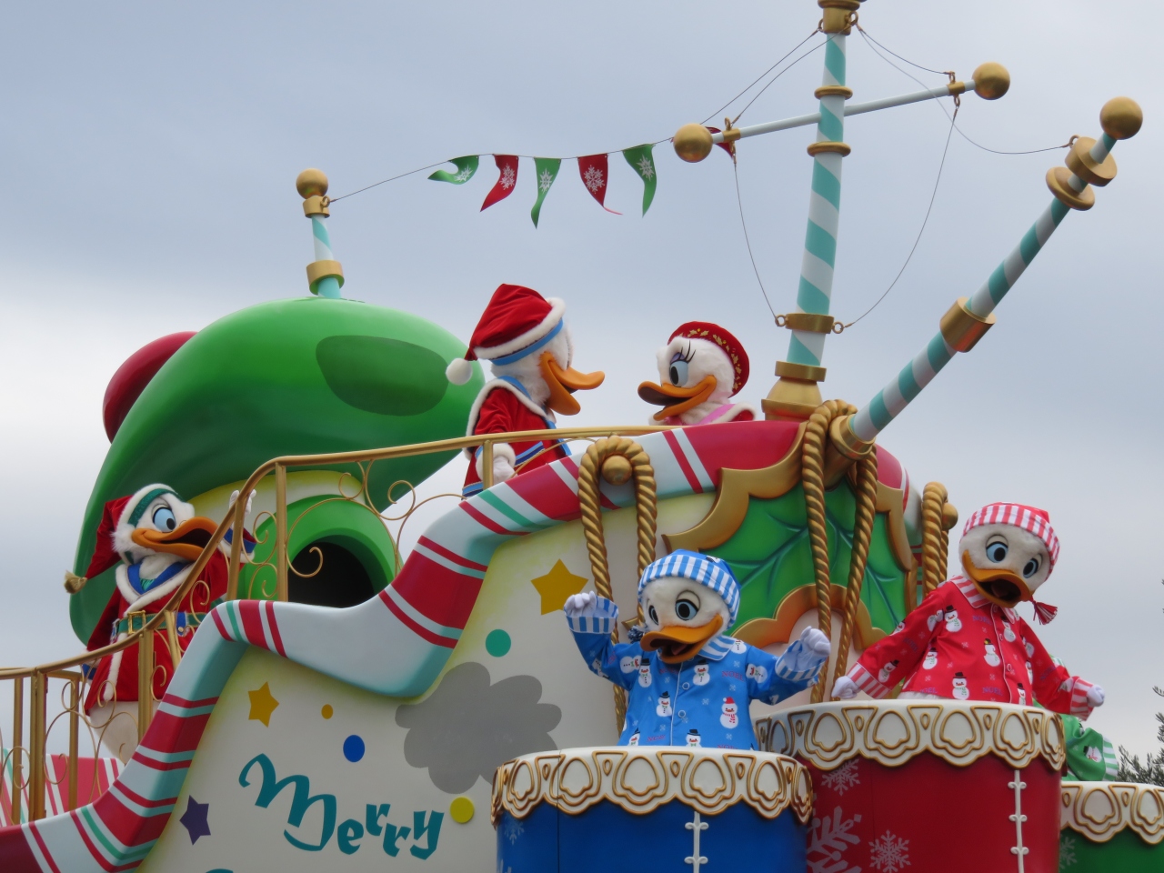 10:40の「ディズニー・クリスマス・ストーリーズ」のパレードを今回座って見ることができた。 個人的な意見となるが、何か寂しいパレードのように感じた。 シメのシーズンだから、かなり派手なものが見られるかと思ったけど… クリスマスは夜のイルミにかけてるのかな?