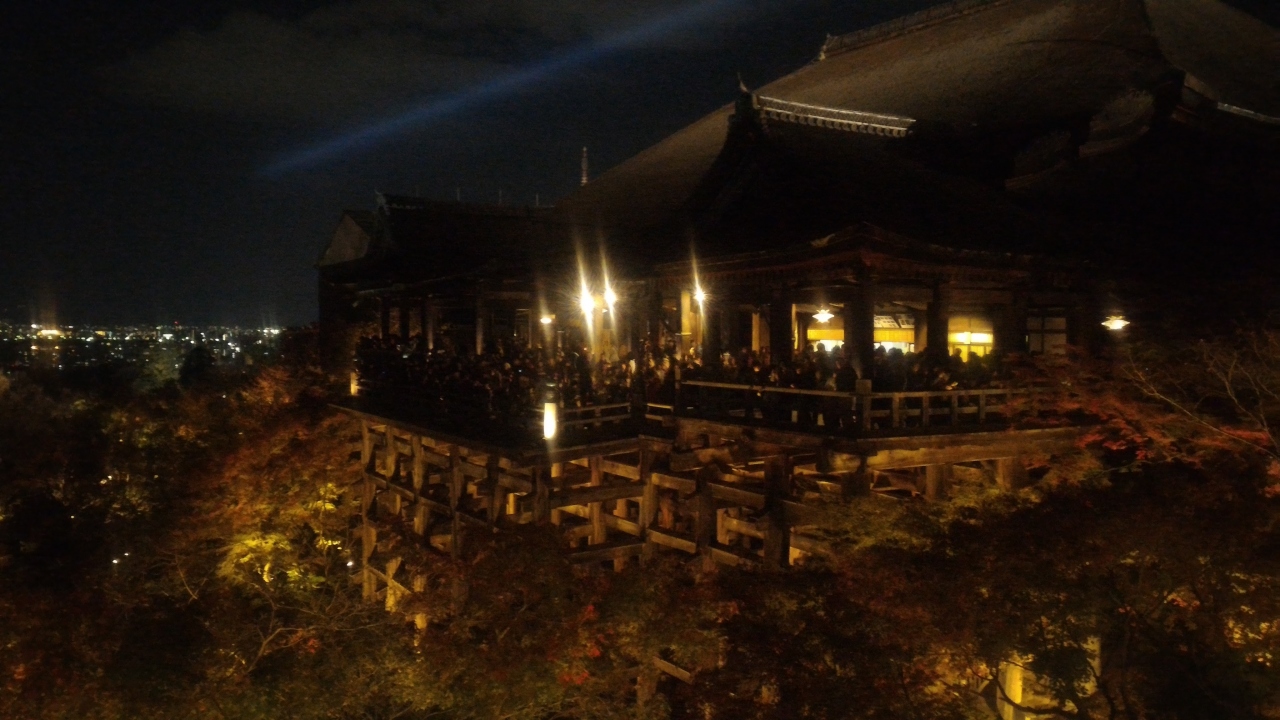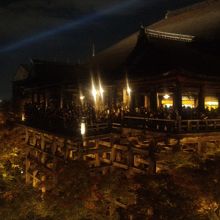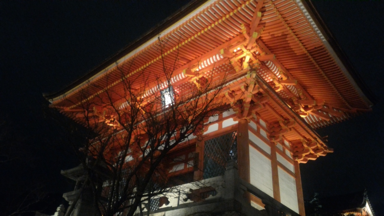 ですが、入口の建物はきれいにライトアップされていますが、肝心の清水の舞台は