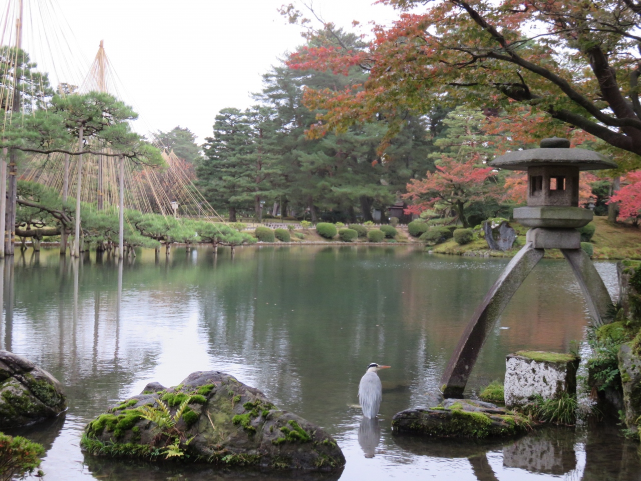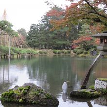 雪吊りも準備ができており、これから訪れる冬支度と、紅葉のコラボレーション。