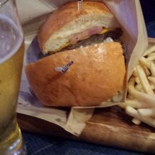 メニューは、ステーキ、ハンバーガー、ピザなどで、ビールはバドワイザーです。