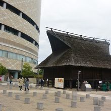 現在大阪歴史博物館・NHKの建っている辺りには古墳時代、規則正しくずらっと倉庫が並んでいたようで、そのうち、ひとつが復元されています。高床式倉庫です。その他は石で柱の場所を表しているようでした。昔大阪は上町台地だけが陸地であとは海だったそうで、船で運んできた荷物を保管したのでしょうか。