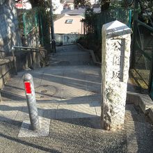 山手公園・テニス発祥のコートを見ながら行くと道は階段になってしまいます。階段そのものはたいしたことはないのですが、すでにかなり坂道を下っているので少々難渋します。まぁ女学校の裏手で車両の通行がないため遠く本牧を眺めつつ歩くのも悪くはありません。