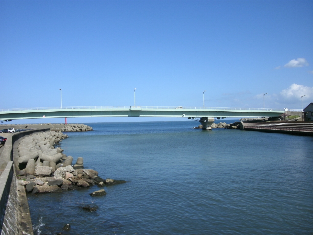 北陸自動車道の小杉ICからR472号を北へ約20分、新湊の西漁港と東漁港を結ぶ橋です。