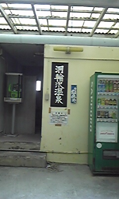 漁港の前に建っている小さな青色の建物がこの温泉です。