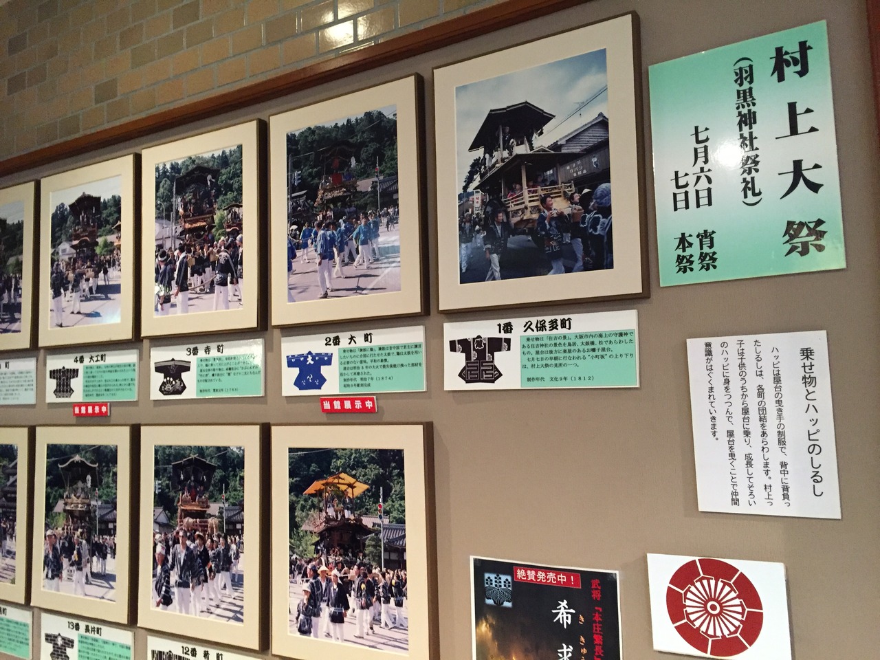 村上市の7月の祭り 村上大祭 で曳き回される 山車 この地方で おしゃぎり と呼ばれる本物が3台展示されている。