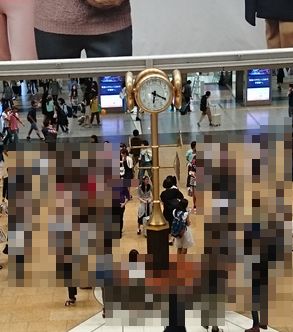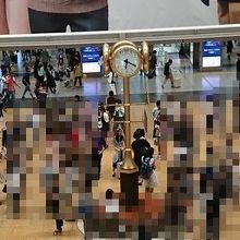 JR名古屋駅中央コンコースの桜通口側にある金色の時計です。エスカレーターが4基並んだ前にありますのでとても目立ちます。待ち合わせスポットとして有名で、反対側の太閤通口側には「銀の時計」がありますのでお間違えのないように!