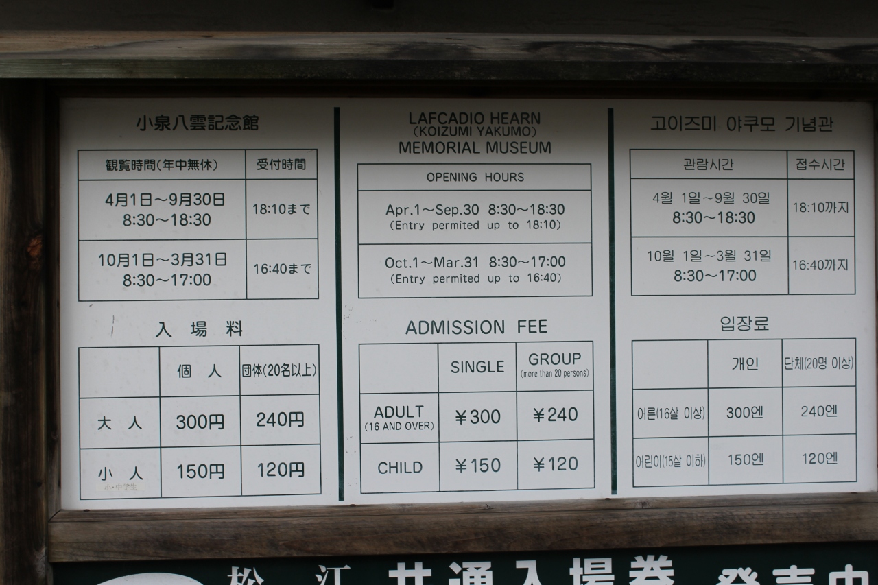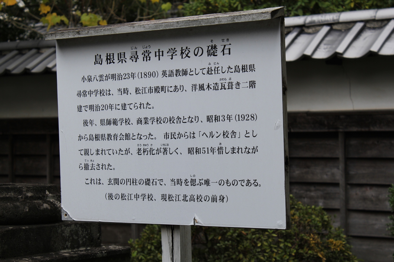 松江城とその周りを散策していて、小泉八雲旧居に入り小泉八雲とある程度理解した上で隣にある小泉八雲記念館に入りました。記念館は小泉八雲が愛用した遺品などがズラリと展示してありました。塩見縄手の一番奥にあります