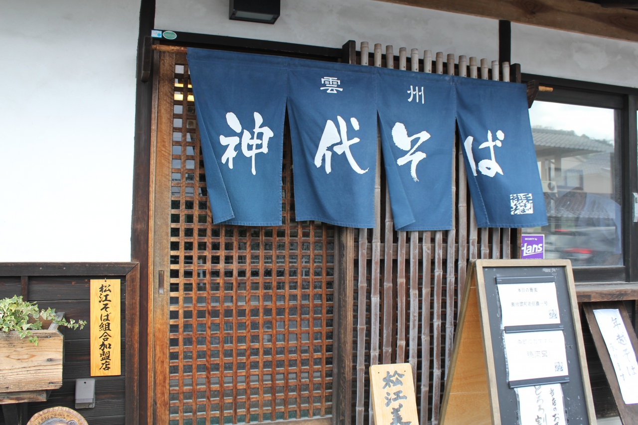 松江城の城下町塩見縄手を北に向かい歩いて、小泉八雲記念館を過ぎて少し行った所にあります。松江城周辺には沢山の出雲そばを出す蕎麦屋さんがありますがここは皆が旨いと言う店の常に上位に入っています。休日は観光客で混みあいます