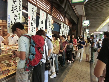 創業100年の和生菓子屋さんです。お店の一番人気は名代「豆餅」。いつからか行列ができるほどの人気店になりました。田舎大福やかぶき団子なども人気がありますが、生菓子なのでお土産にはちょっと不向きかな?JR京都伊勢丹地下1階でも「豆餅」が買えるんですよ!火曜日と木曜日以外の12:00と14:30です。