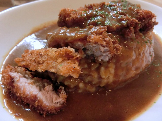 ご飯の上に大きなチキンカツが乗ってきましたよ。