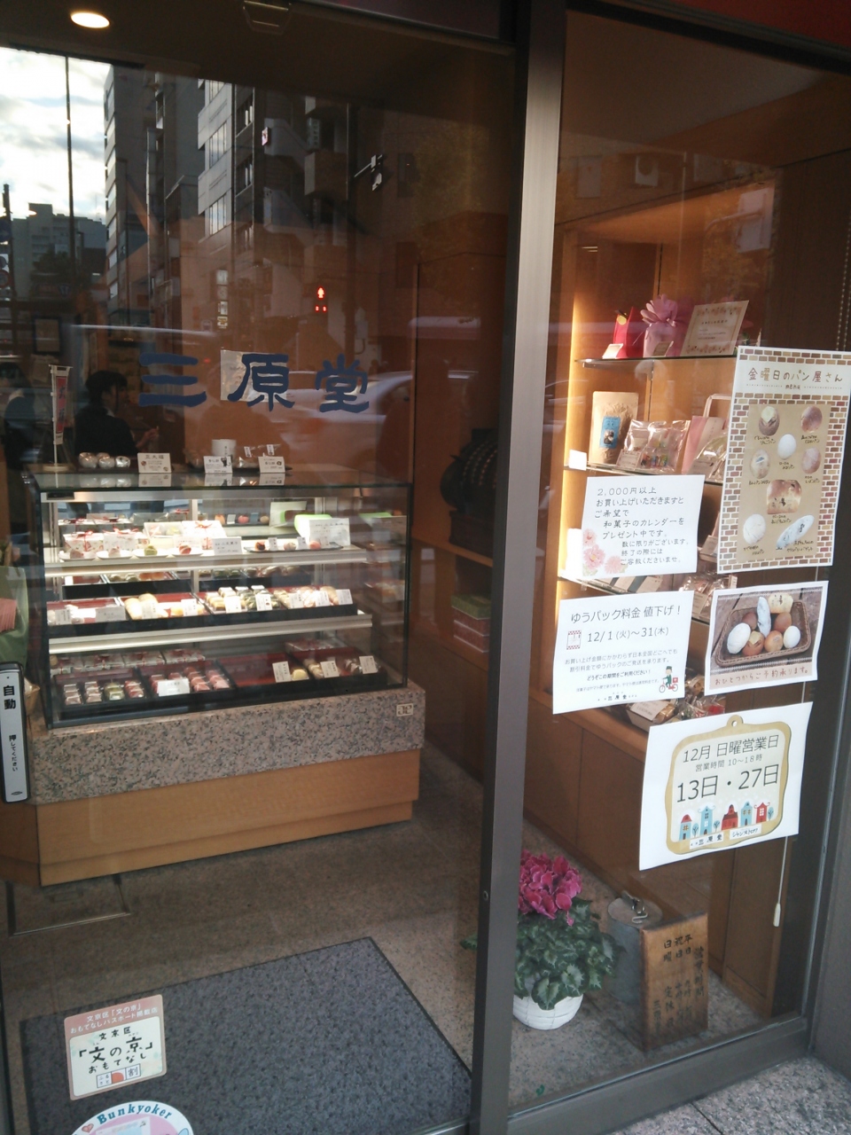 本郷3丁目の三原堂、有名な老舗店です。本郷三丁目の交差点にある老舗和菓子屋です。東京大学が最寄りで、大学最中がとても有名です。大学最中は小豆餡と、白いんげん豆の白餡の2種類 があります。あまり甘すぎない和菓子ですので、贈り物でも安心です