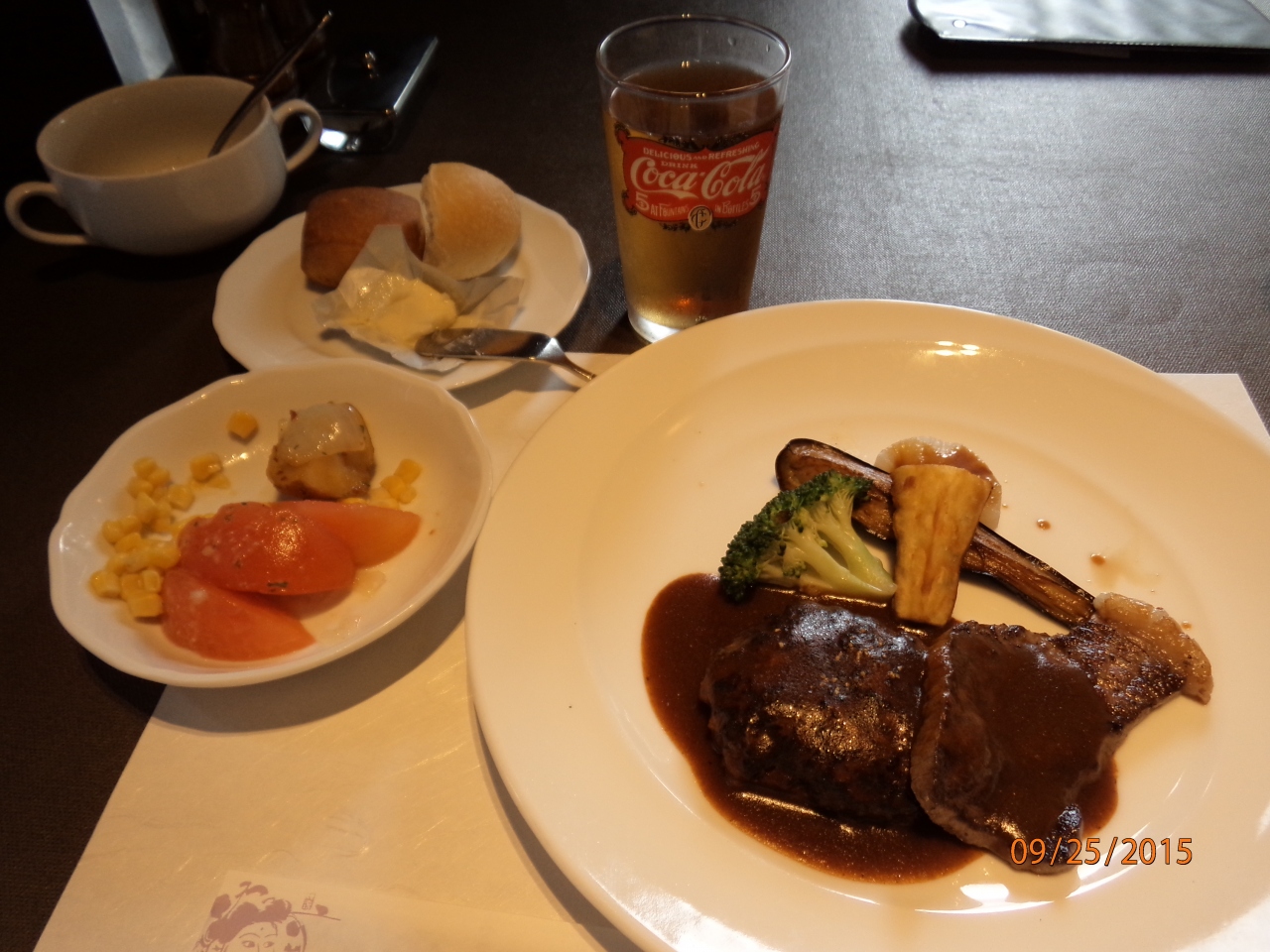 ランチタイムに合わせて行き、ミニハンバーグとミニステーキを注文したんだけど、本当にミニ過ぎてビックリ‼? サラダなどのビュッフェもついて1600円だからしょうがないのかな。 メインを注文するとサラダやスープ、コーヒー/紅茶はビュッフェスタイル。 野菜のポタージュスープがめちゃくちゃ美味しくておかわりしちゃいました!