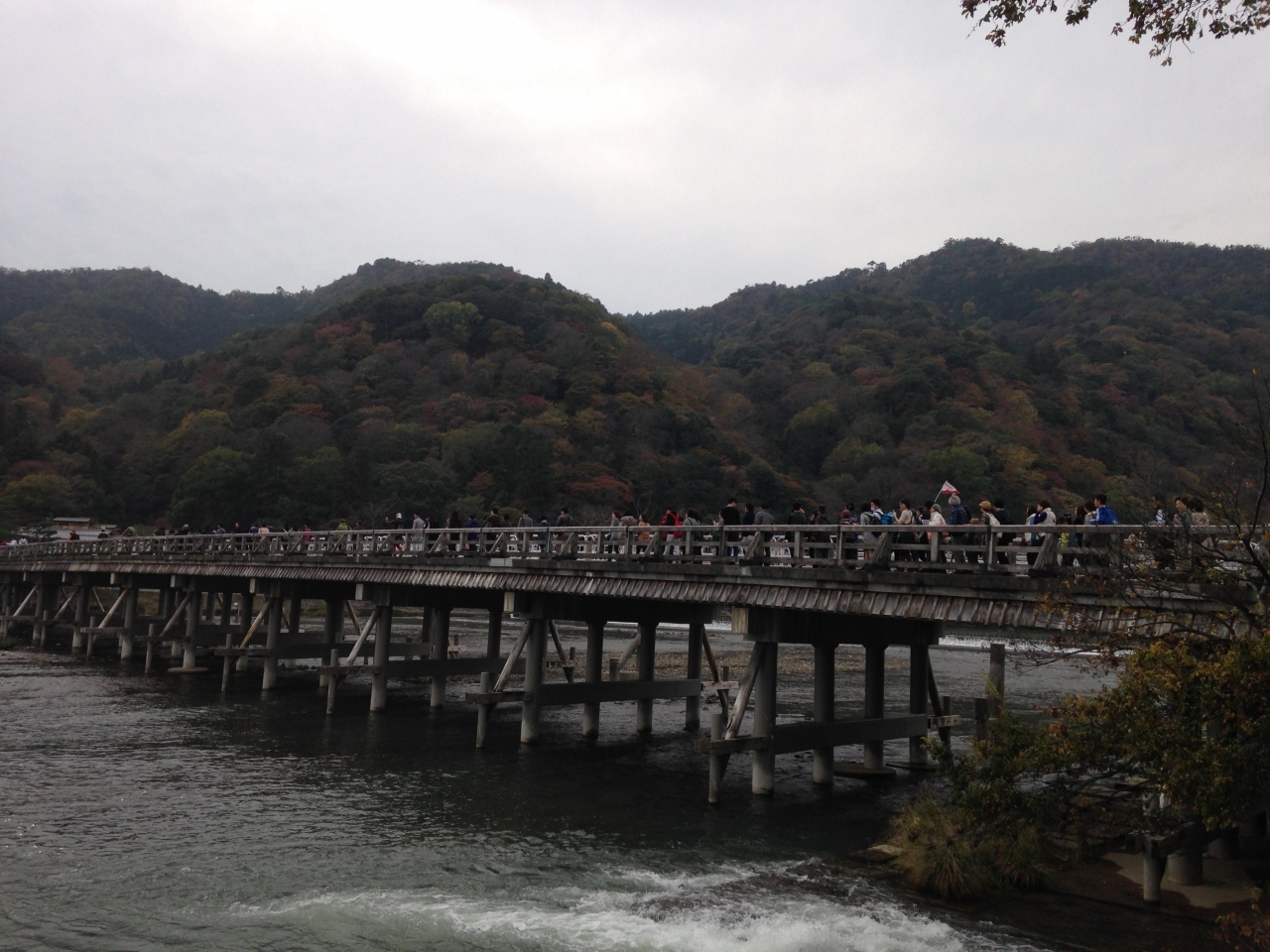 11月の連休の昼ごろ行きました。嵯峨嵐山までも電車も混んでおり、渡月橋は警察も入って一方通行の誘導をしていました。紅葉は京都市街地よりもより深みがある感じがしました。舟遊びをしている景色はのどかでよかったです。