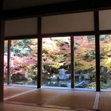 高野川沿いの大原街道にあるお寺です。六角形の笠をもつ蓮華寺形と呼ばれる石灯籠があります。庭園は鶴と亀の形をした石組みを配した池泉式で石川丈山作とも言われ、初夏には青もみじ、秋には鮮やかな紅葉が味わえます。叡山電車三宅八幡駅下車徒歩5分です。