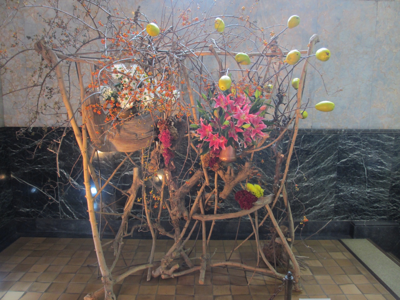信濃町駅から徒歩15分です。神宮外苑のイチョウ並木の先に見える建物です。外装の花崗岩、大理石張りの大広間、天井ドームなど建物が芸術です。国の重要文化財に指定されました。明治天皇の生涯を描いた大壁画が展示されます。初心者から経験者まで指導してくれる絵画館学園があります。茶道・生け花・書道・日本画・舞踊など様々な教室があります。ステンドグラスと石の美しい柱・壁が印象的でした。