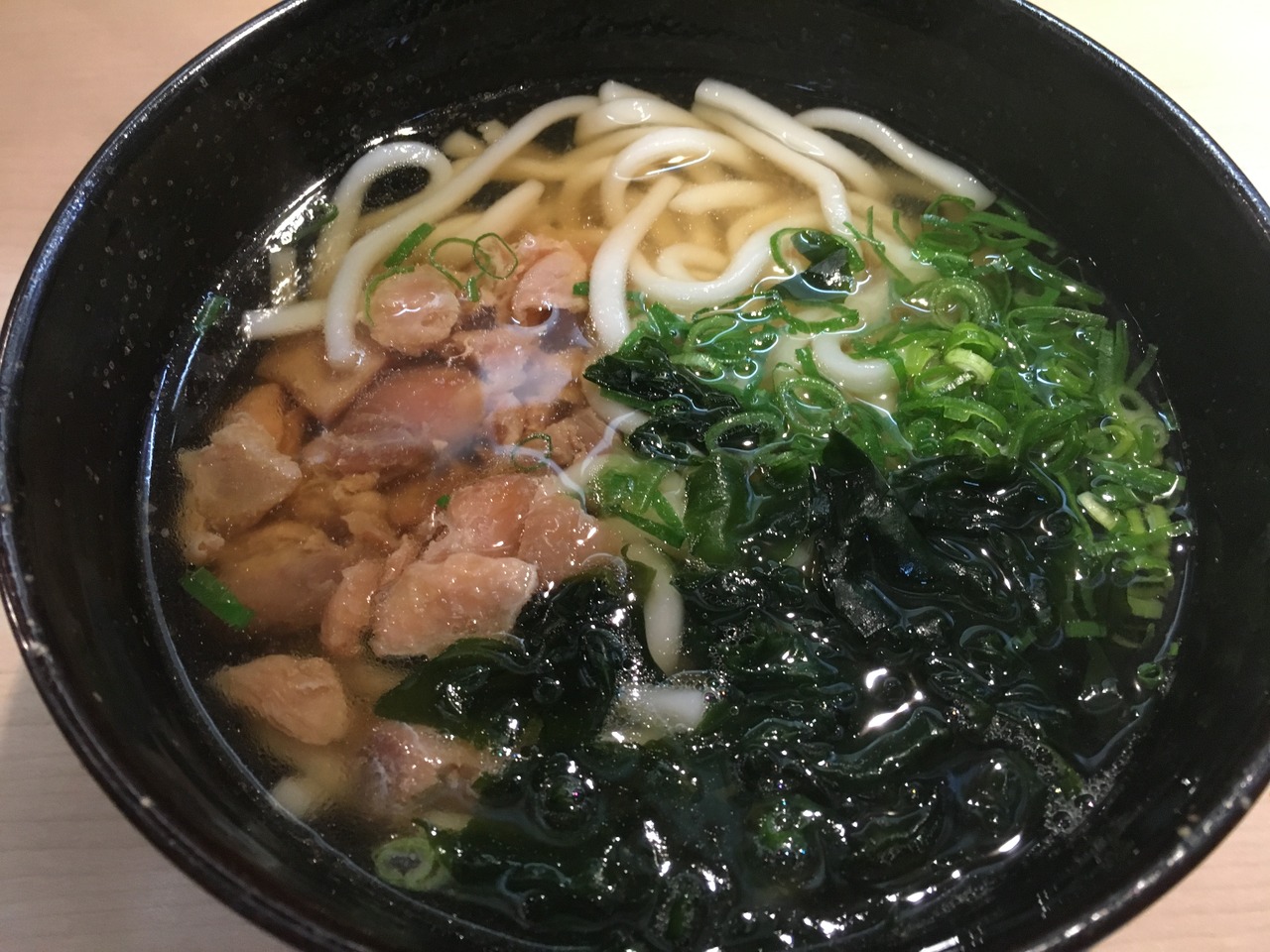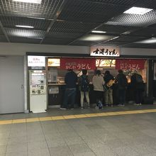 JR小倉駅改札を入った所にある立ち食いうどん。かしわうどんが有名とのことで
