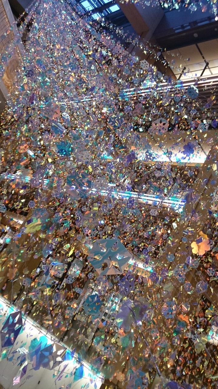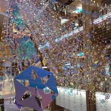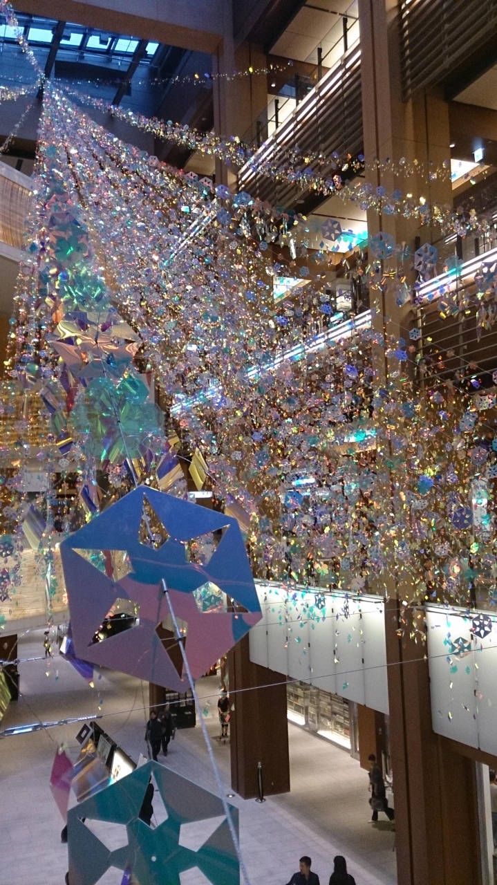 今年もミッドタウンはクリスマス一色に彩られています。外の、ウェルカムイルミネーションに始まり、宇宙をイメージしたスターライトガーデン、そして中央のガレリアの吹き抜けは、寒が厳しい時に見られるサンピア(太陽柱)と呼ばれる自然現象を表現した「ダイヤモンドダスト」も美しくクリスマスを盛り上げます。ピアノやバイオリンのコンサートもありゆっくりと楽しめます。