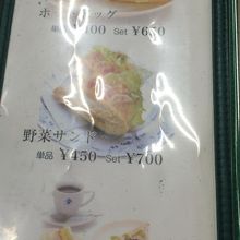 食べ物も、トーストやホットドッグ、ケーキなど、軽食があります。