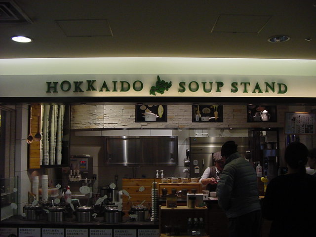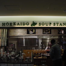 北海道の玄関口である新千歳空港の2F、「ショッピングワールド」に入るカウンター式のスープショップ。寒い時期には需要も大きいです。トマト、玉ねぎ、牛肉、スープの中に入るさまざまな食材は北海道産です。パンやドリンクとのセットもあります。