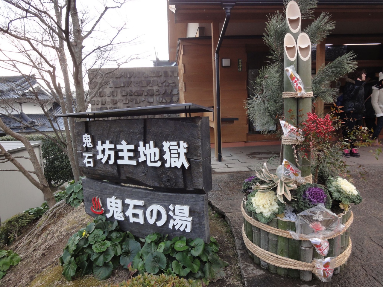 年末に行ったので門松が飾ってありました。泥がボコっと膨らむ形が坊主頭そのもので、名前の通りです。ちょっと不気味ですが、見ていてあきません。噴いては消え、噴いては消えの一瞬だからだと思います。間近に見ることが出来ます。