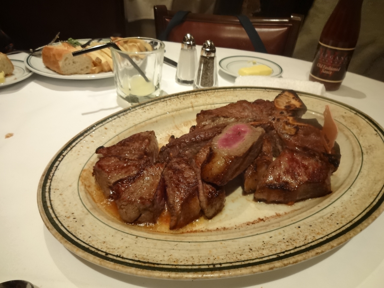 16000円のプレミアムステーキを目的にいった。550グラムもあるので、二人で食べるのに満腹。ポテトやサラダを注文すると先に出てきて、ステーキは最後。店員さんが出すタイミングを見計らっているのはさすがです。